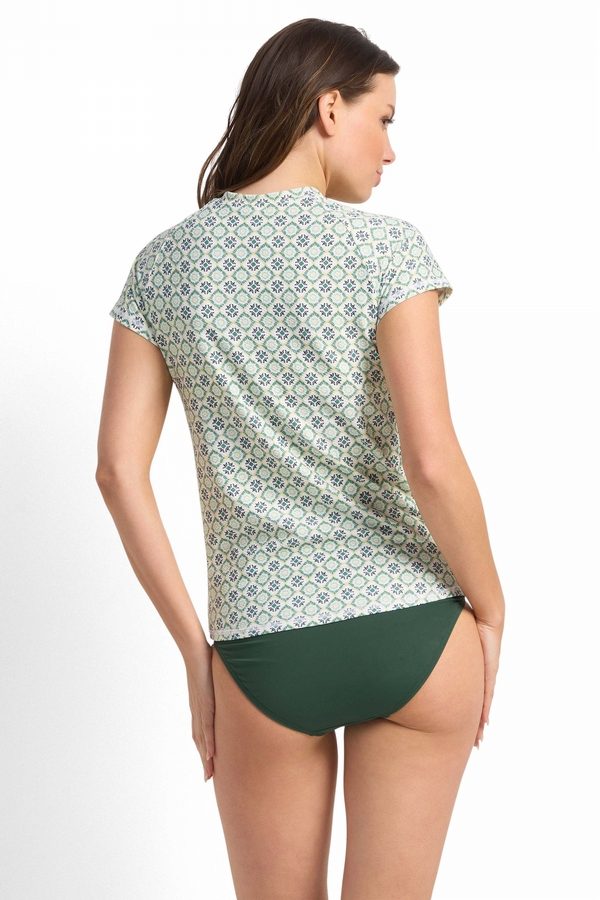 Ocean-ready. This modern one piece features a high neckline, short sleeves, and full torso coverage with UPF50+ protection where it matters most. Thoughtfully constructed with an inner shelf bra, fixed soft cups, and mastectomy pockets for secure, supportive wear, while the zip-up front adds versatile styling options. Finished with contouring seams and a regular pant cut, keeping you comfortable and confident all day long.