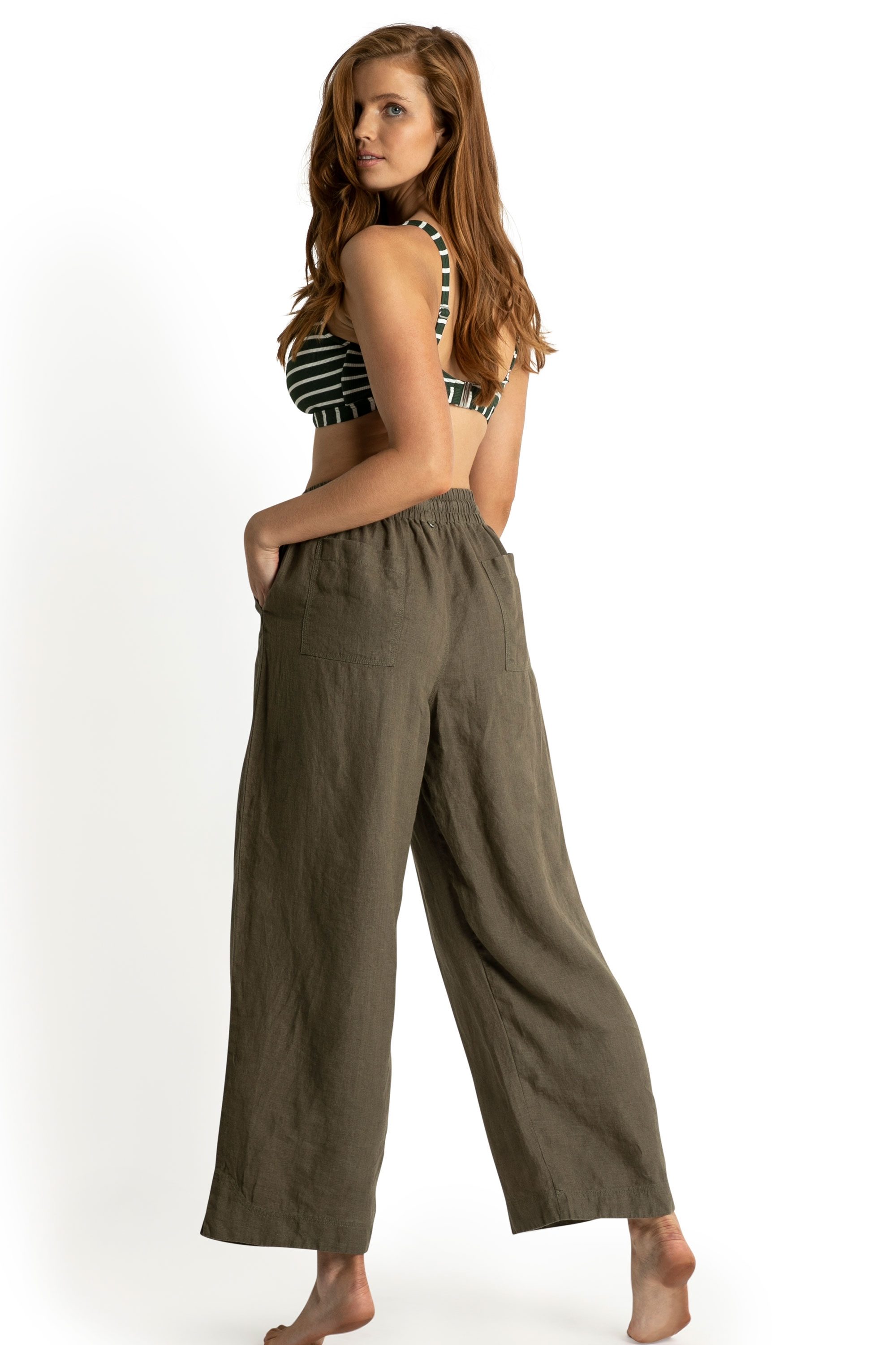 LEARN MOREVacation dressing made easy. Crafted from 100% linen for ultimate breathability, the Resort Pant combines a wide elastic waistband with an adjustable drawcord tie for a comfortable, customised fit. Side hip pockets add a touch of convenience, while the full-length design gives you a stylish, sun-protected look.