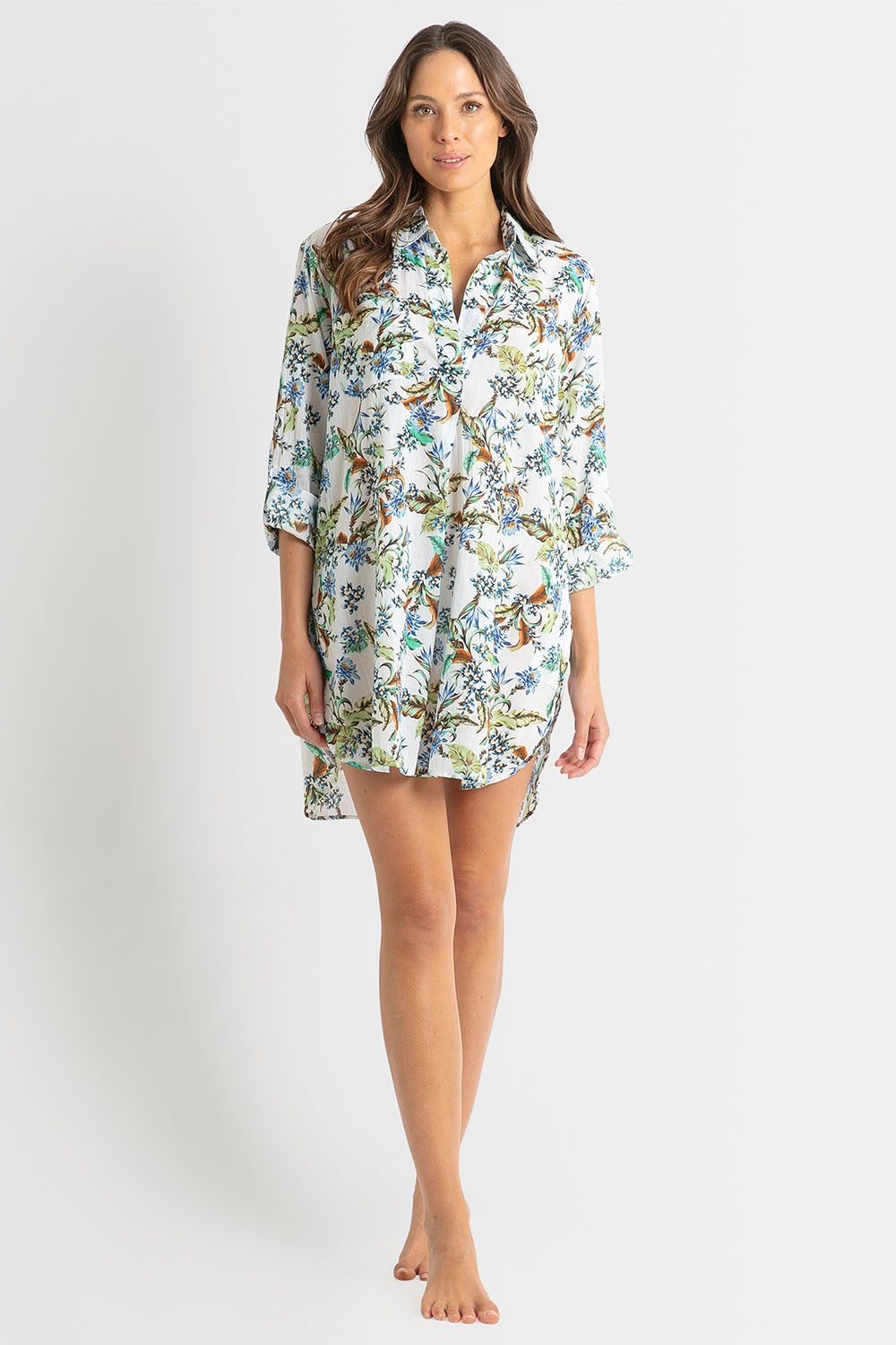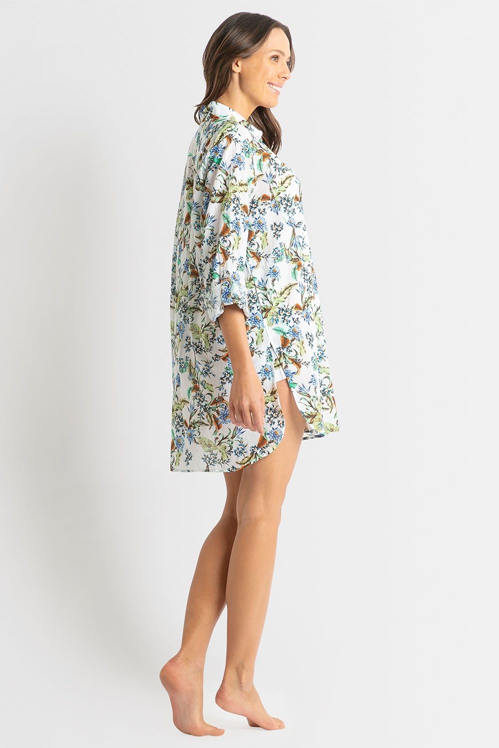 Our best-selling cover up. The classic painters shirt is the perfect easy throw-over for the beach, by the pool or even at home during the summer. With a comfy generous fit and side splits, this shirt will keep you cool all day long. The long roll sleeves offer sun protection, while the side pockets add a functional and stylish finish.