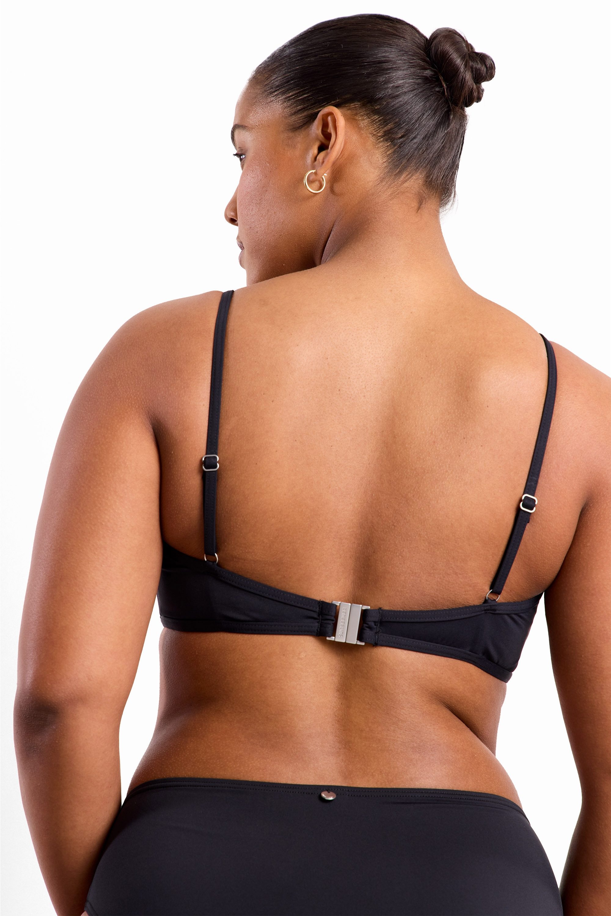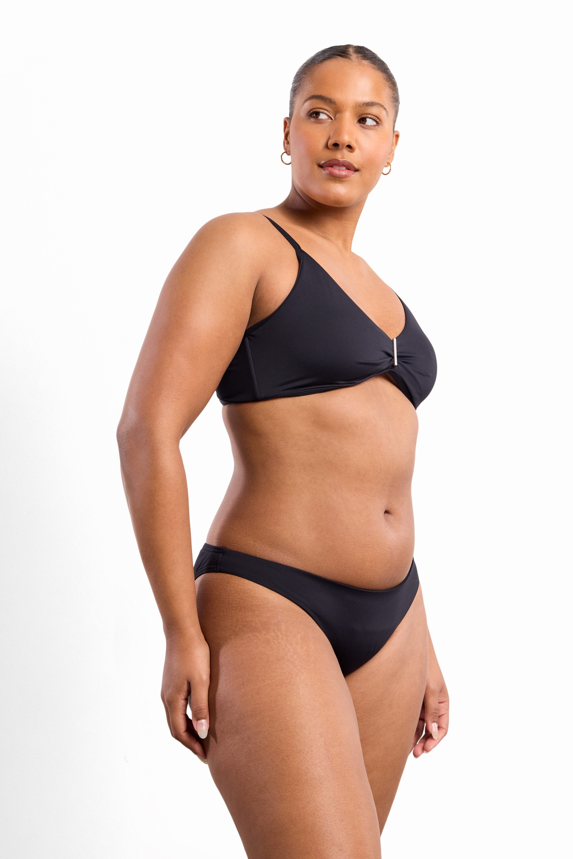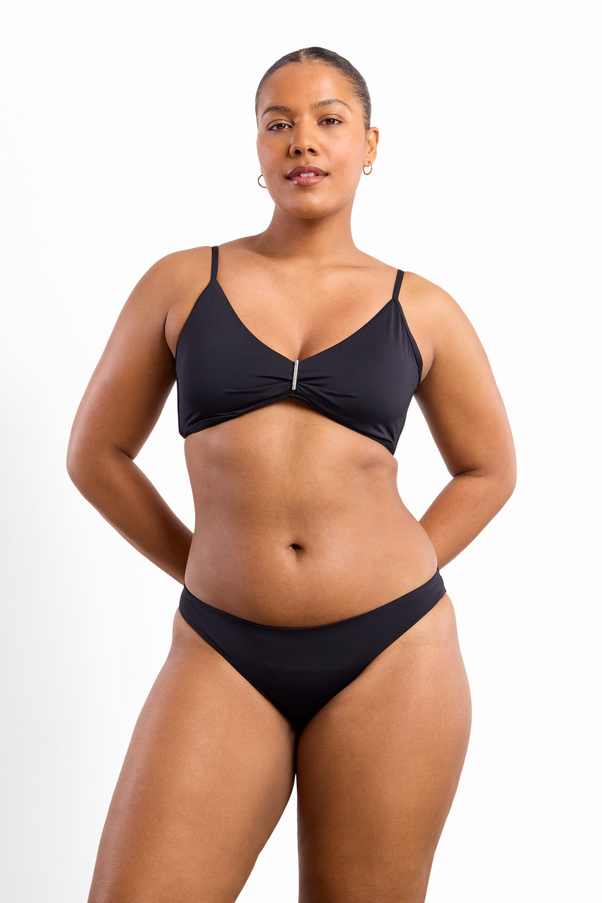 For a dainty, sun-kissed look, our Multi Bar bikini top is perfect for A-C cups. A plunging V-neckline is met with a striking centre front bar for the ultimate luxurious finish. With every ray of sunlight, this shimmering accent will transform you into a vision of elegance. Tailor the fit to you with adjustable straps and a secure back clip.