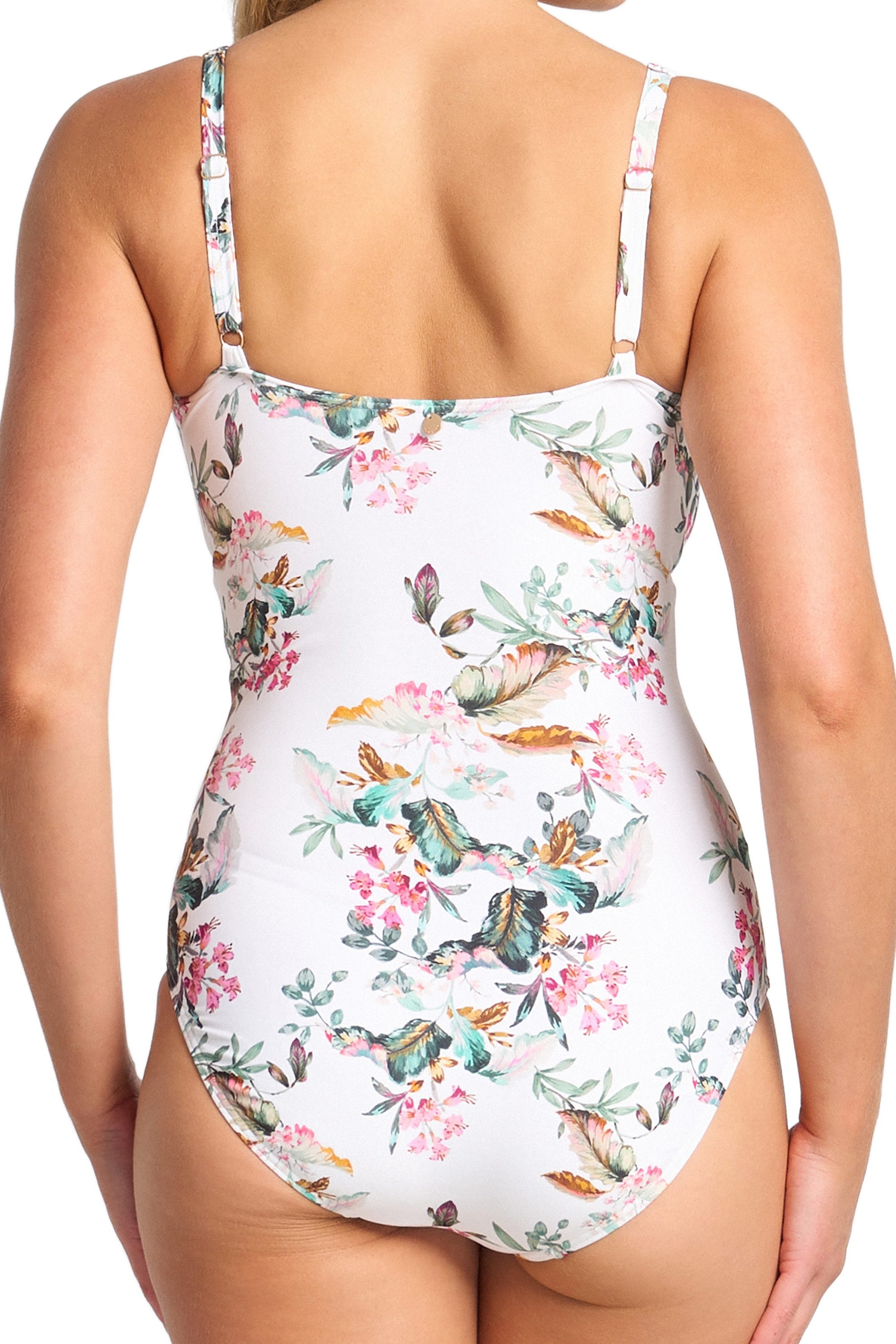 For our DD-E ladies, this style is designed to beautifully minimise your bust while maximising comfort. Featuring a seamless neckline and an elegant soft front strap detail, it effortlessly flatters your décolletage. With hidden underwire, a customisable fit, and powermesh fabrics, you'll experience superior support so you can enjoy carefree days in the sun.