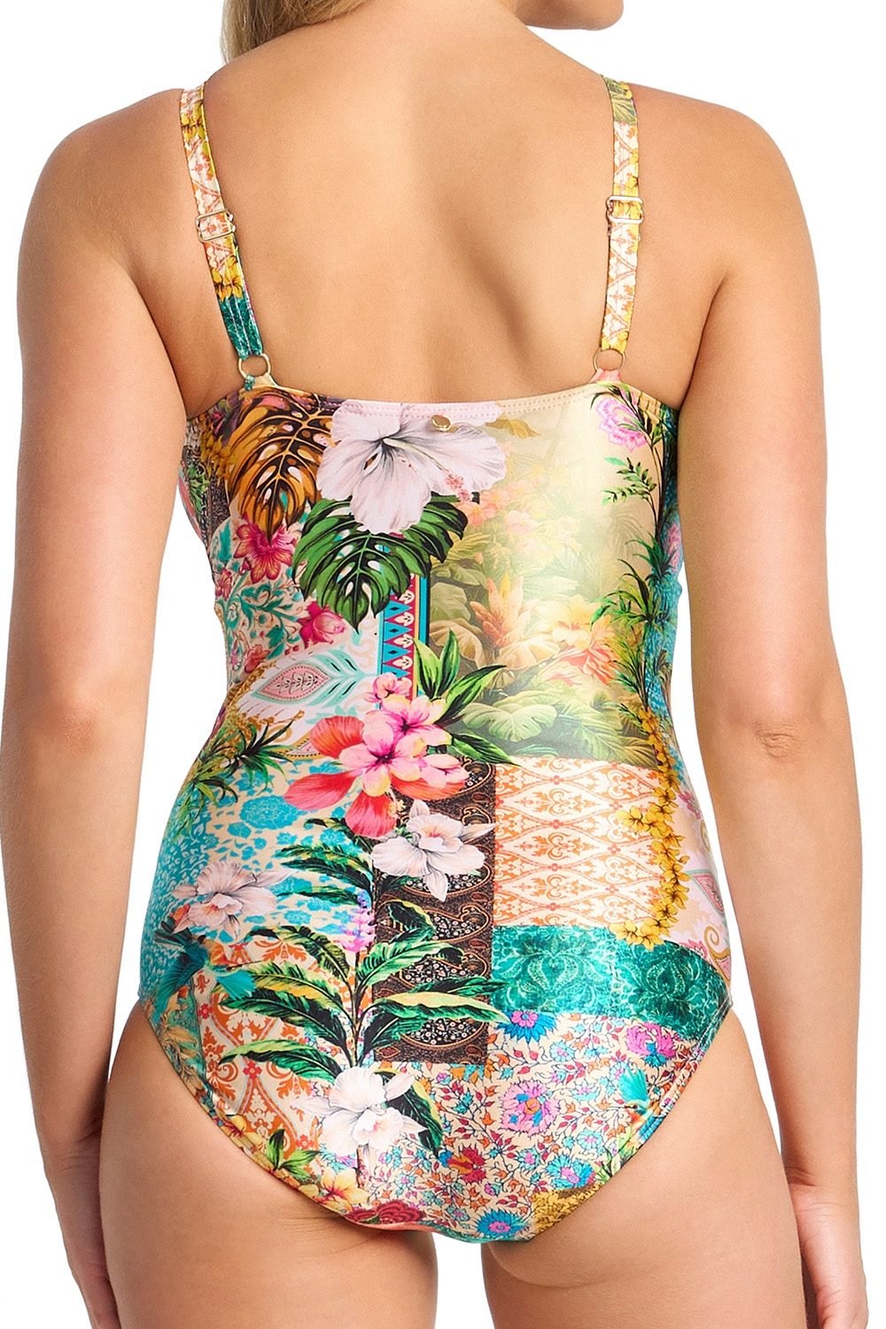 The E-F One Piece is thoughtfully designed to flatter and support fuller busts — so you feel confident, comfortable, and beautifully held. Crafted to subtly minimise while maximising ease, this style features hidden underwire, powermesh lining, and adjustable elements for a truly custom fit. Finished with a striking gold centre bar at the V-neckline, it offers all the luxe you deserve, with support that goes the distance.