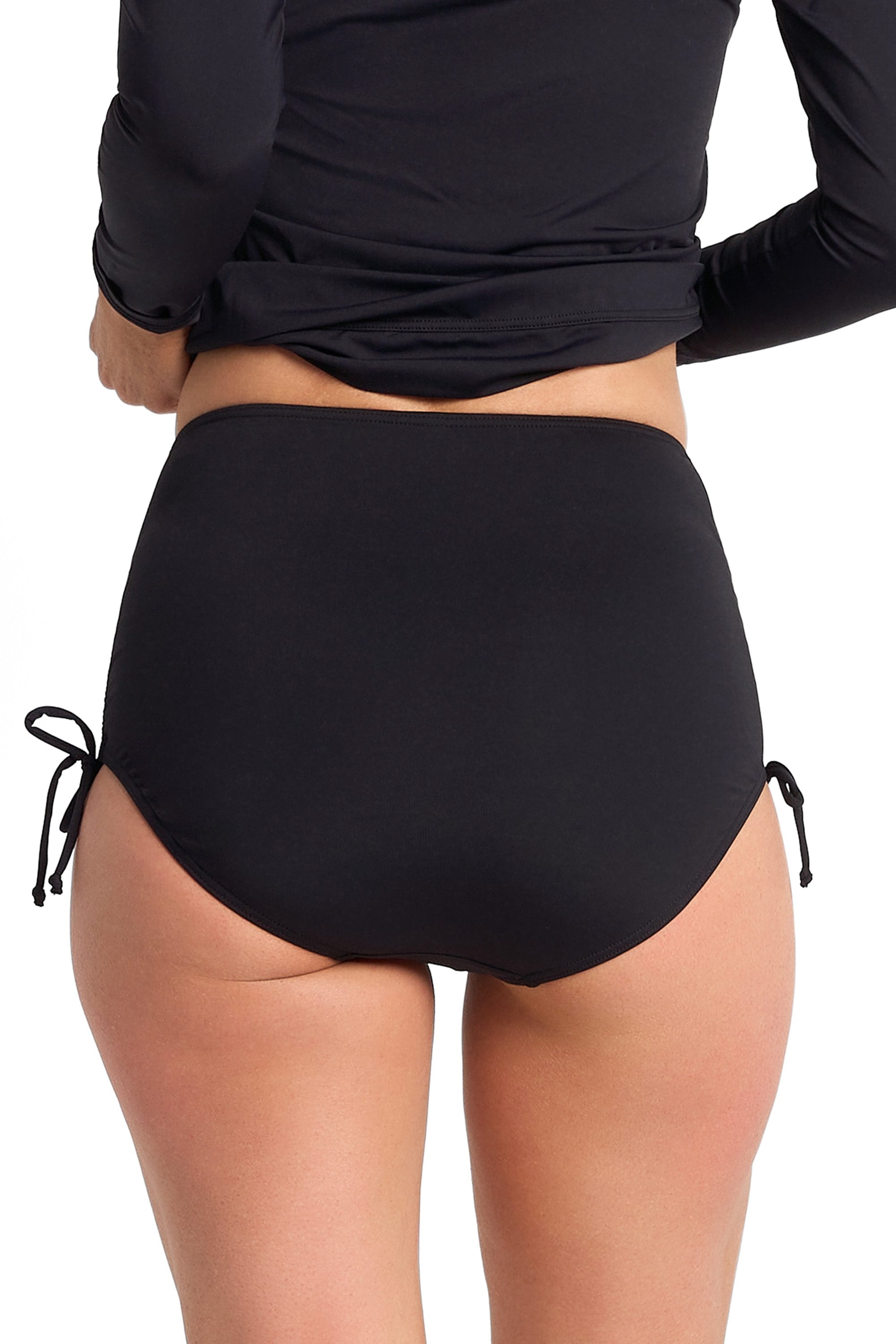 The Tie Side Pant brings all the flirty energy. Designed with a flattering low-rise fit and classic coverage, it features adjustable side ties that thread through dual loops for a luxe twist. Long, elegant cords drape softly at the hips, finished with polished metallic hardware for a touch of shine.
