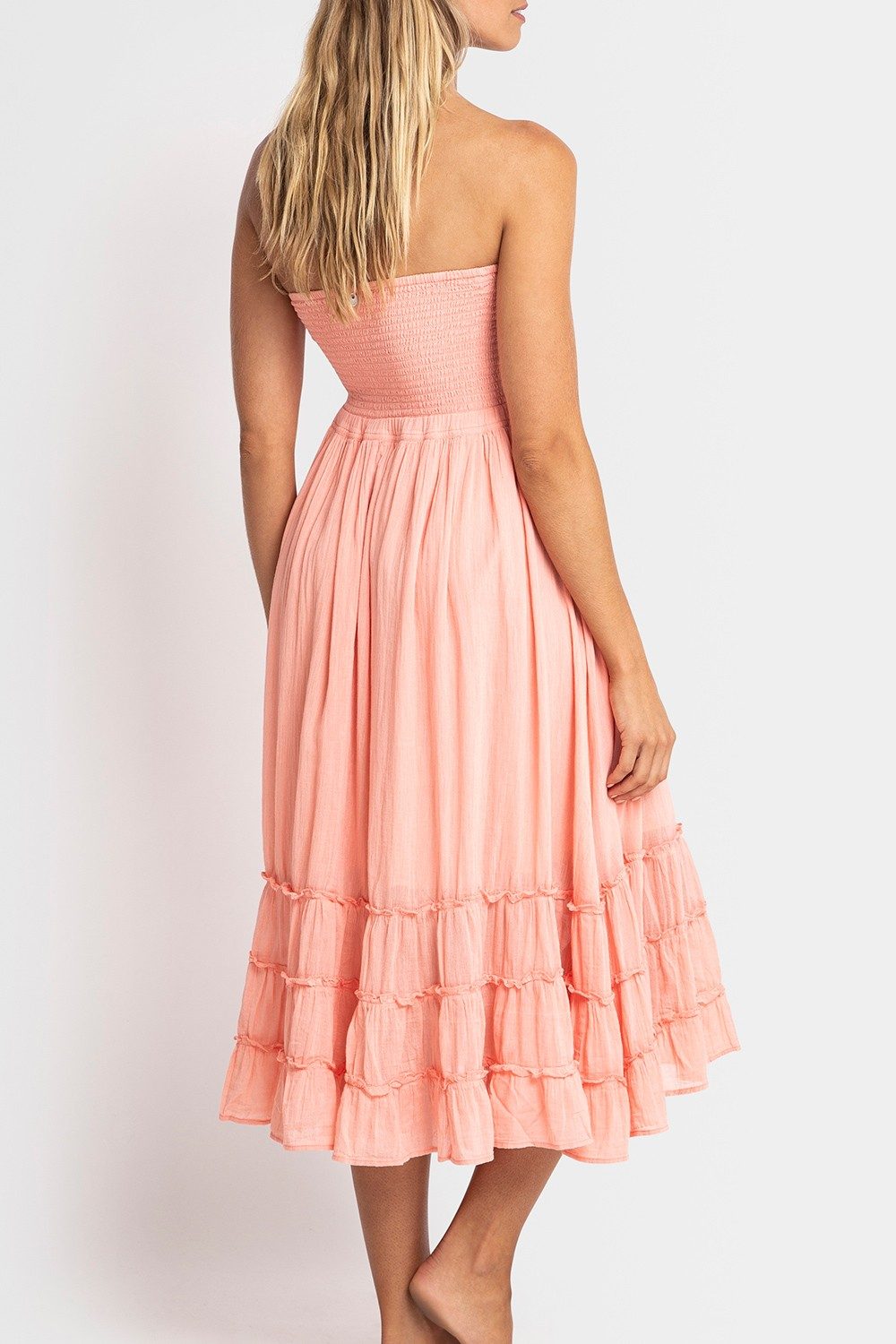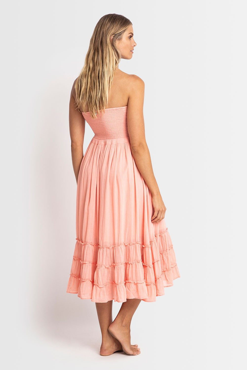 LEARN MORELet your shoulders soak up the sun in this effortlessly elegant maxi. Designed in a relaxed fit, it features a strapless neckline with a removable tie for versatile styling. A softly shirred bust panel keeps you comfortably in place, while the flowing maxi length and delicate ruffle hem add a feminine finish. Perfect for golden days and easy moments.