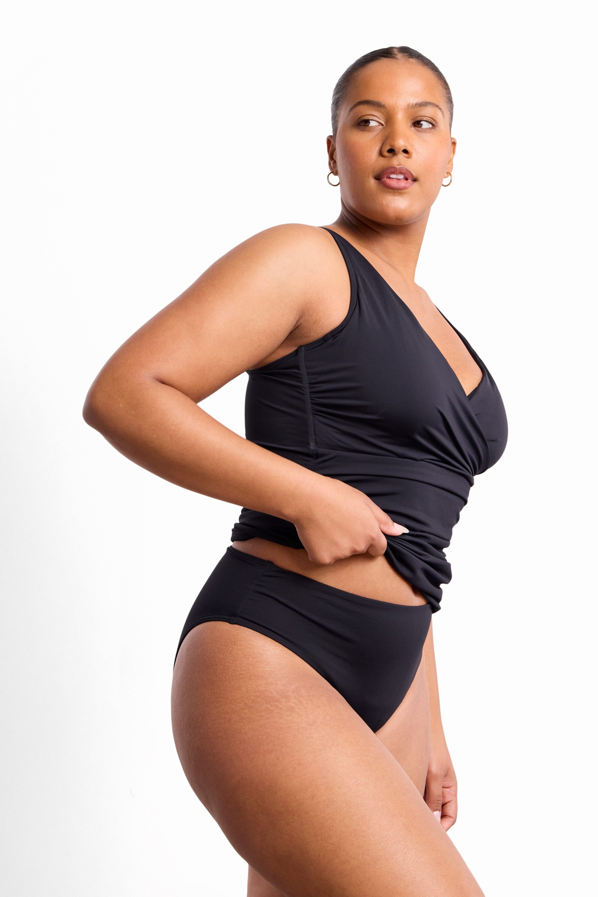 For our DD-E ladies, this style is designed to beautifully minimise your bust while maximising comfort. Featuring a seamless neckline and an elegant cente-front drape, it effortlessly flatters your décolletage. With hidden underwire, a customisable fit, and powermesh fabrics, you'll experience superior support so you can enjoy carefree days in the sun.