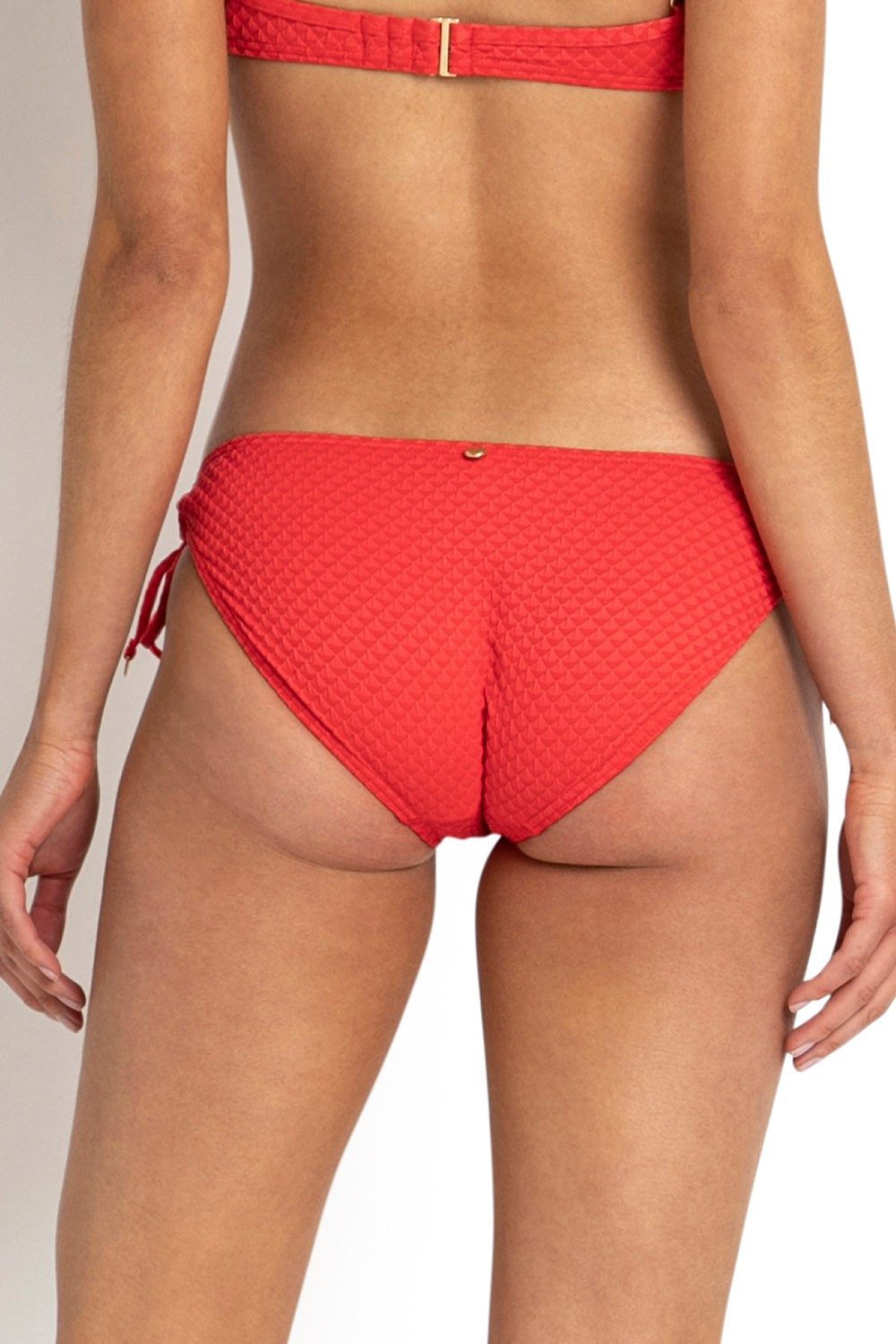 The Tie Side Pant brings all the flirty energy. Designed with a flattering low-rise fit and classic coverage, it features adjustable side ties that thread through dual loops for a luxe twist. Long, elegant cords drape softly at the hips, finished with polished metallic hardware for a touch of shine.