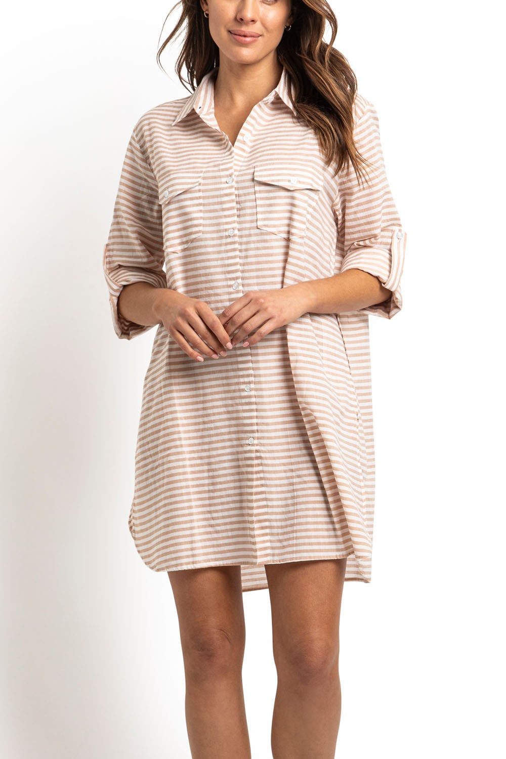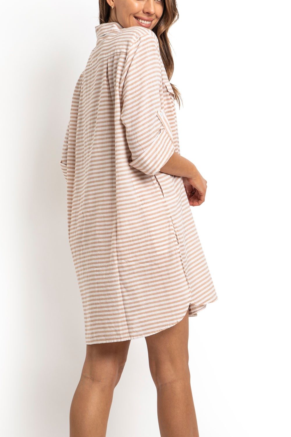 From beach to bar. This best-selling collared button-through shirt is your go-to for a lightweight, breezy look, whether worn as a top or a swim cover-up. With a relaxed fit, side splits, and double patch pockets, it's as practical as it is chic. Roll up the full-length sleeves for a personalised touch.