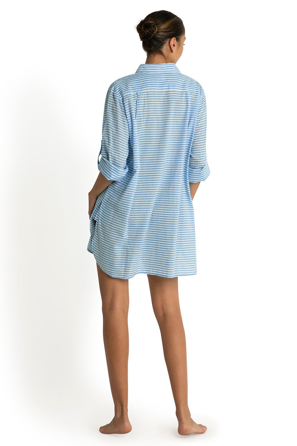 From beach to bar. This best-selling collared button-through shirt is your go-to for a lightweight, breezy look, whether worn as a top or a swim cover-up. With a relaxed fit, side splits, and double patch pockets, it's as practical as it is chic. Roll up the full-length sleeves for a personalised touch.